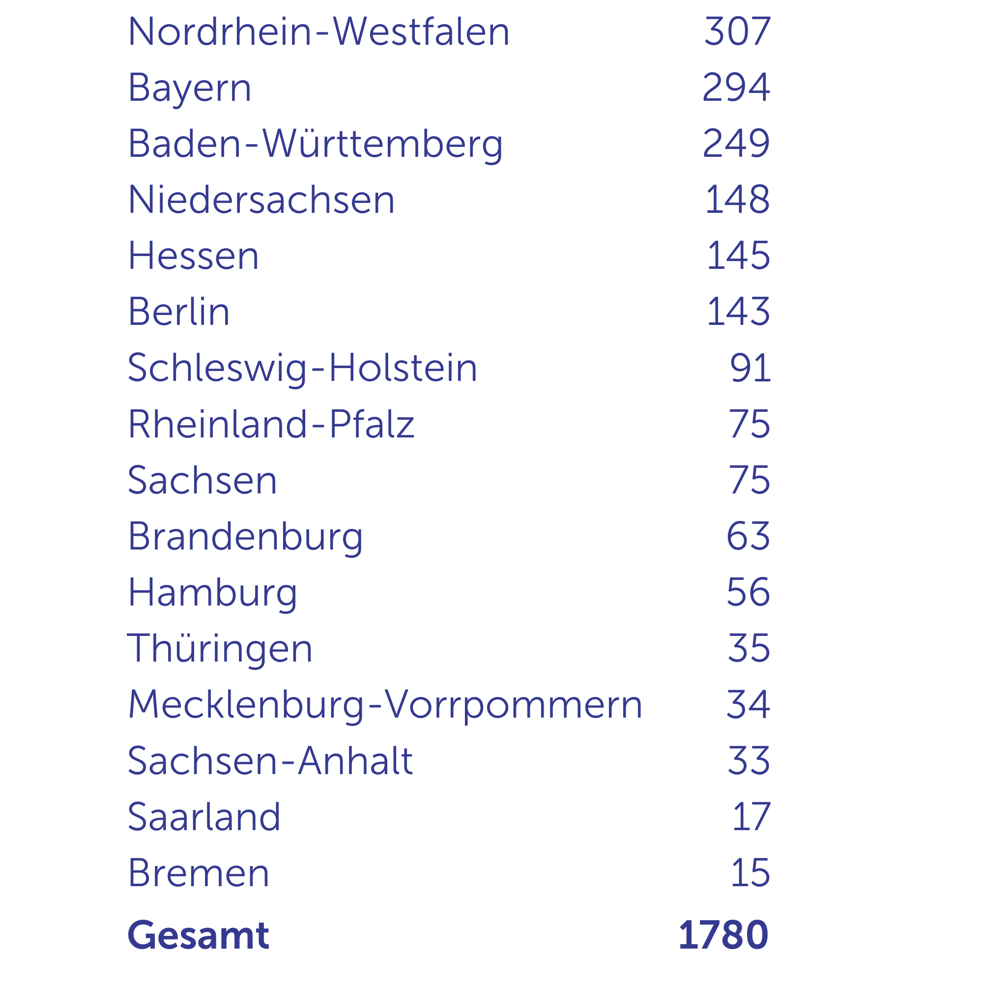 Dank unserer BDS Datenplattform können wir nicht nur zählen, sondern vergleichen: Stadtstaaten gegen Flächenländer, Nord gegen Süd, erwartbare Hotspots gegen echte Überraschungen.