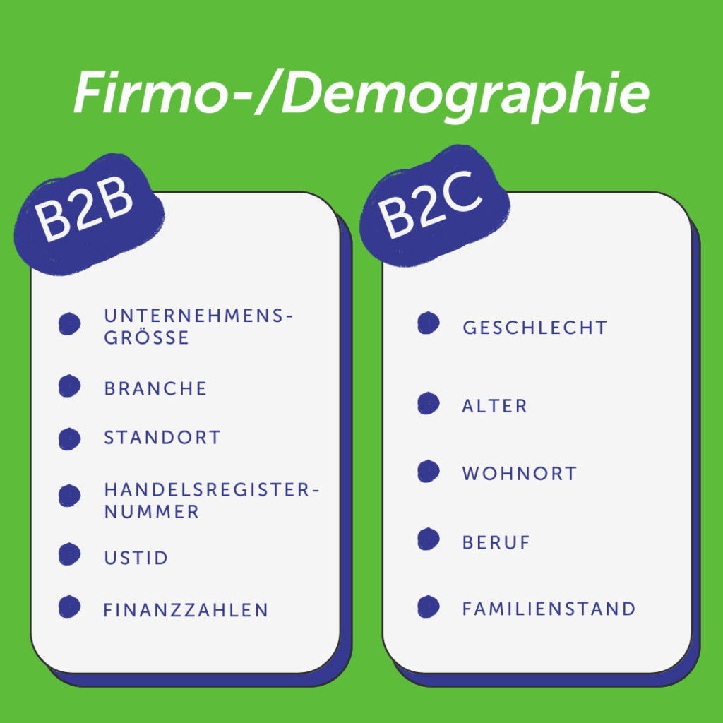 • Firmografische Daten ensprechend zu demographischen Daten