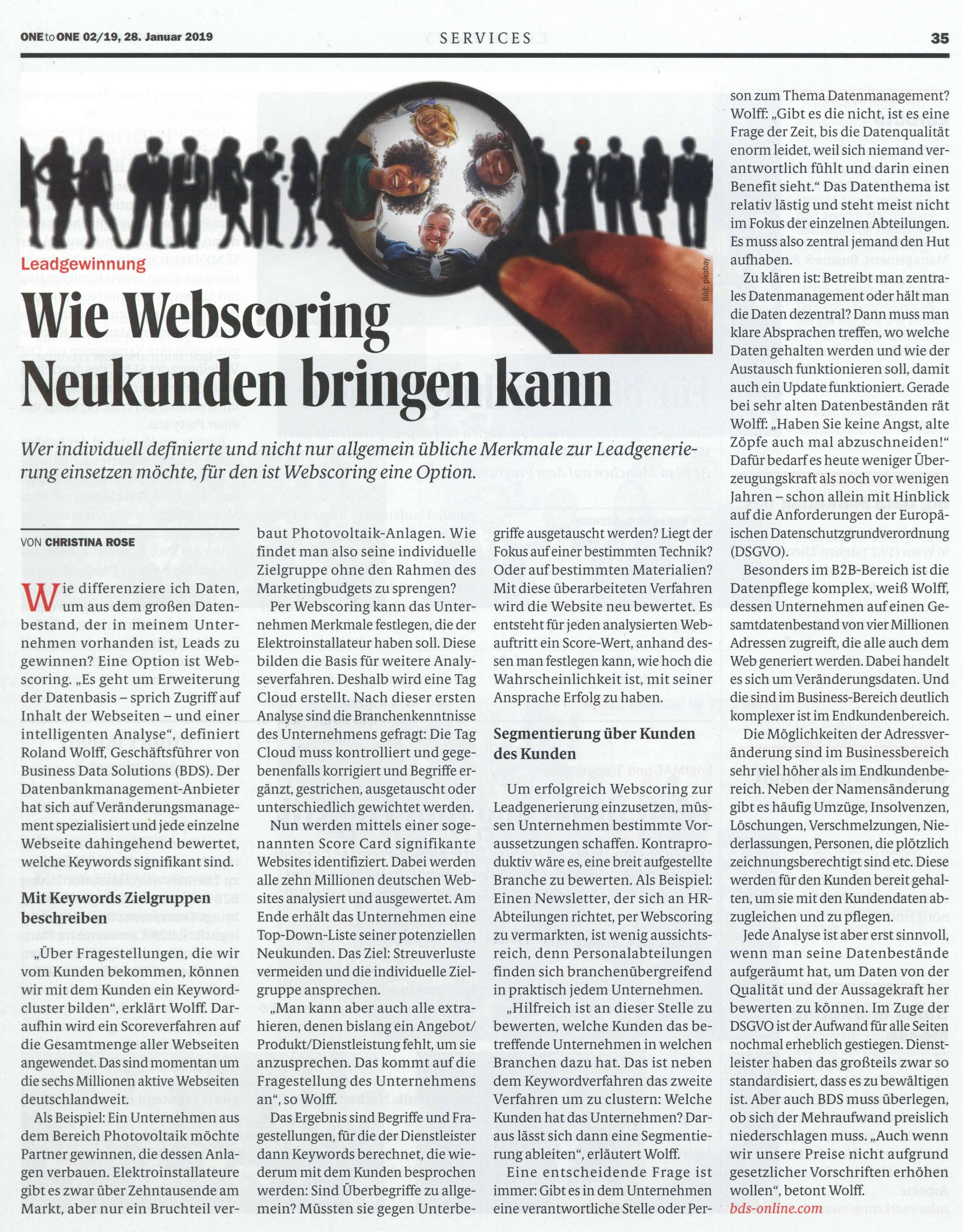 Leadgewinnung mit Web Scoring! BDS Geschäftsführer Roland Wolff gibt Einblicke über das wirksame Verfahren.